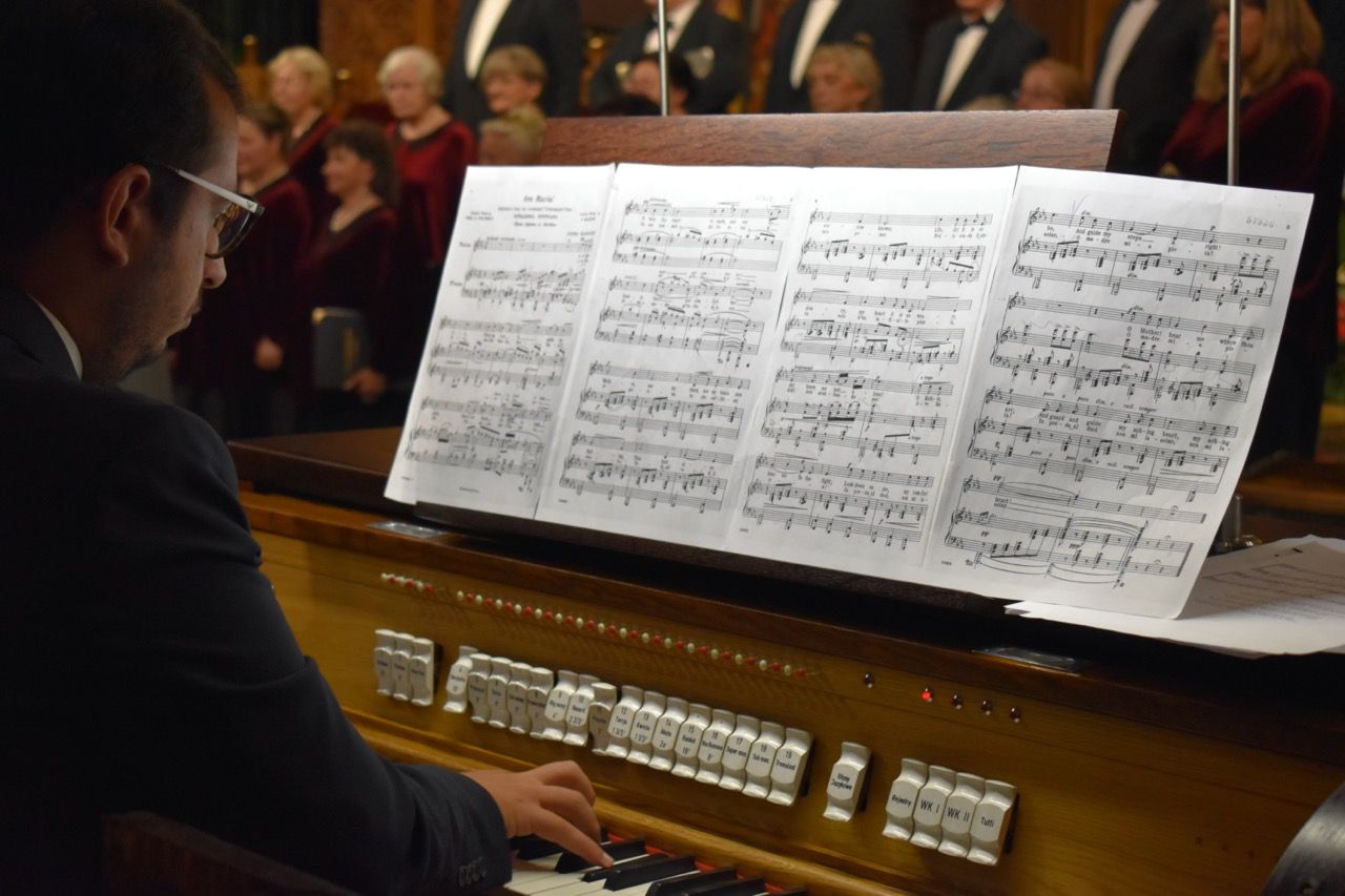 Śpiew i dźwięki wypełniły katedrę, unosząc serca ku Matce Bożej. Maryja – Matka, która prowadzi nas do Chrystusa – była w centrum tego wieczoru, a muzyka stała się pomostem między ziemią a niebem.